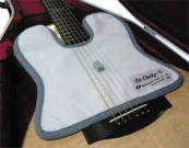 | Air Checker U 湿度調整マット 税込 ¥2,090 特にアコーステイックギターに取り付け易い形をしていますので、弦の間に挟んでご使用くださいませ。 (右写真参考) この製品は内郭の工業用シリカゲルBタイプを、透湿防水フイルム「フレクロン」で挟み込んだシートを使用 シートの両面にポリエステル系の不織布を着けて、ソフトなマットを形成し、ギターの形状に裁断、縫製して あります。湿度50%を境として、多湿の場合には水分を吸収し、乾燥の場合には水分を放出しますので、 ケース内のギターをいつも快適に保ちます。 洗濯は不可です。 |